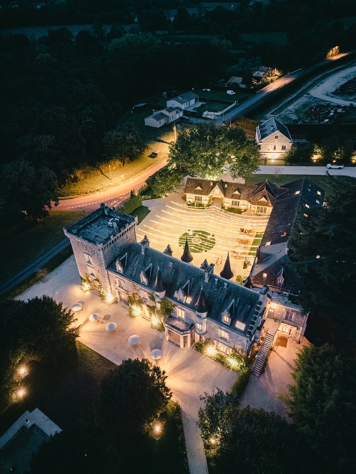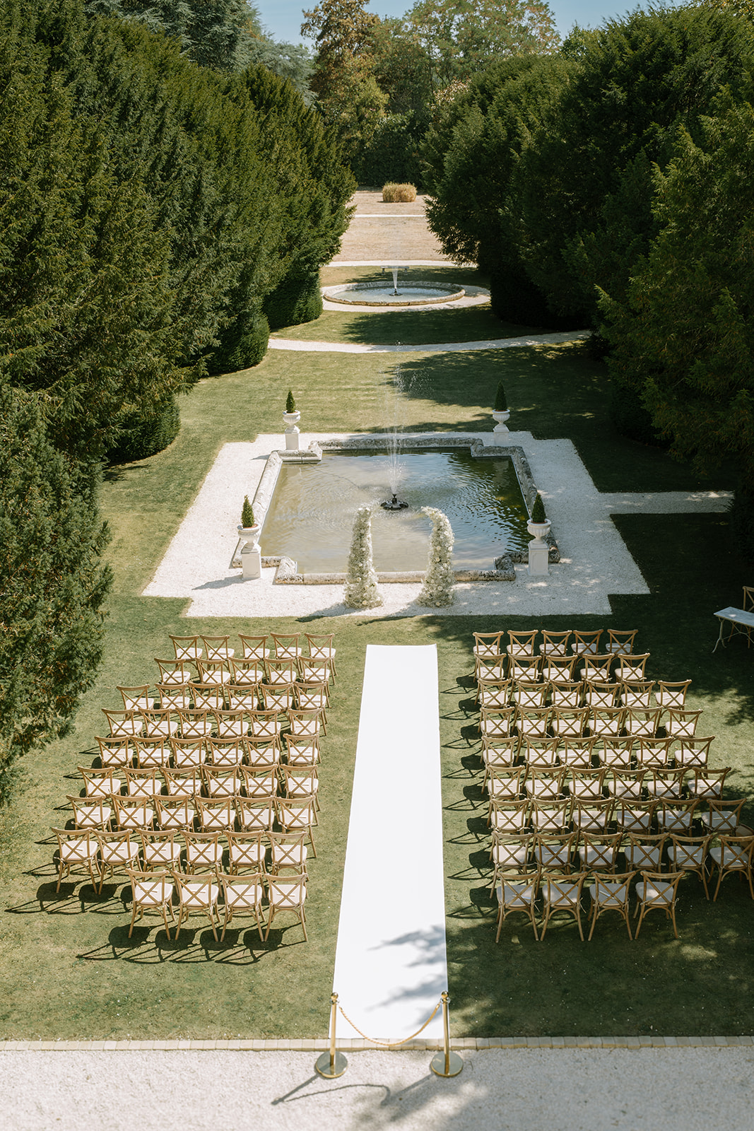 Specializing in luxury weddings, the château offers full exclusivity of its 5-acre estate, which includes enchanting gardens with fountains, woodlands,  a large swimming pool, and open spaces perfect for events or even helicopter landings.