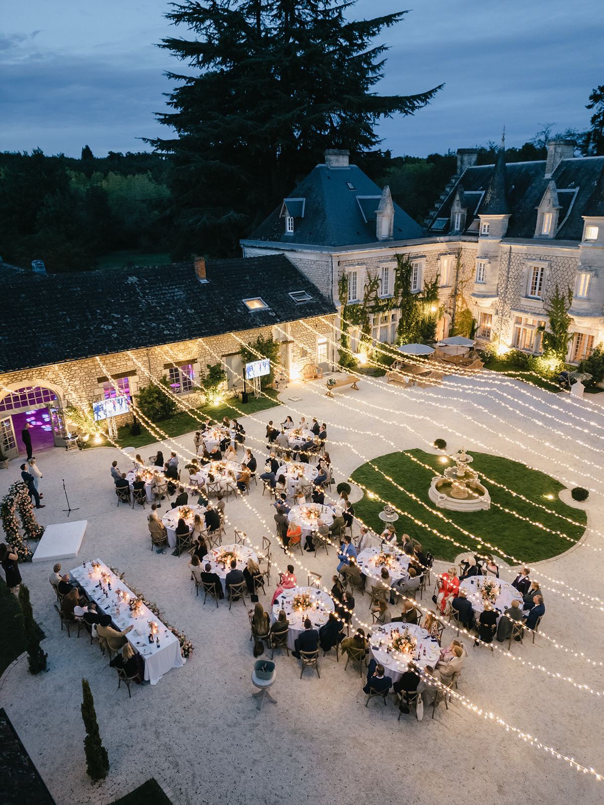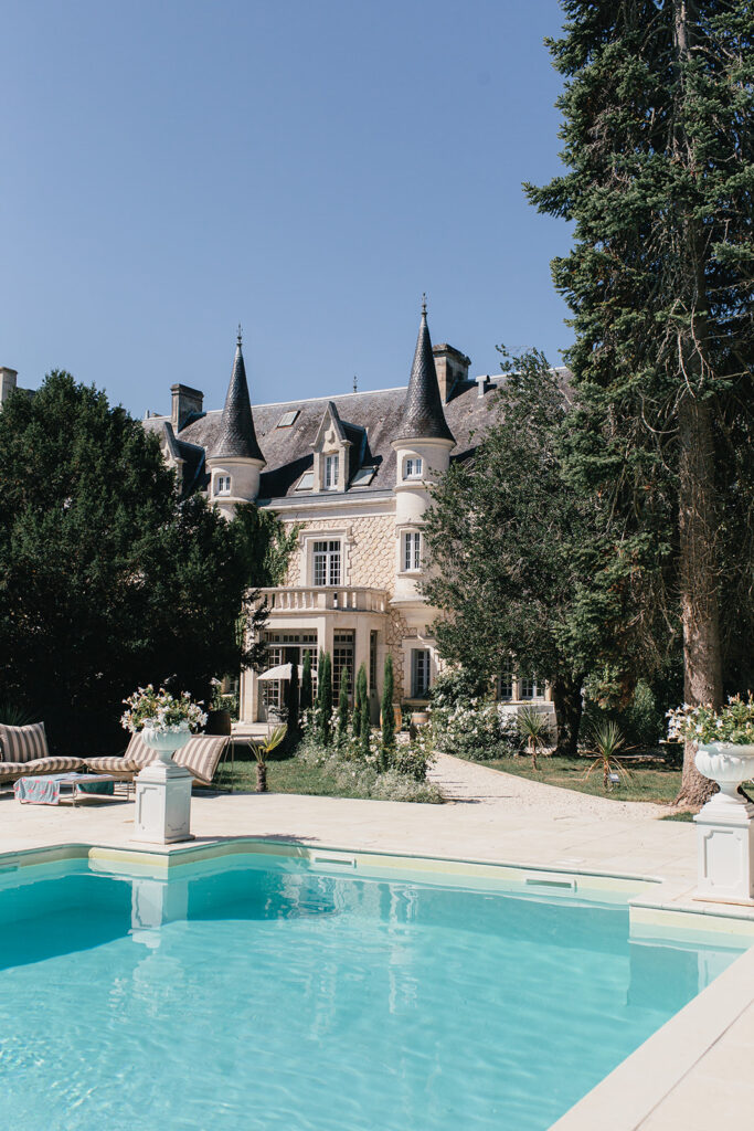 Château de la Couronne offers an exclusive Three-Day Wedding Weekend in the picturesque countryside of southwest France, starting with a relaxed welcome party on Friday featuring drinks and sharing boards. On Saturday, say “I do” in the enchanting gardens, followed by canapés and cocktails on the terrace, an elegant three-course meal in the courtyard, and an after-party in the banquet hall. Finally, on Sunday, unwind at a stylish poolside party with a live pizza station, garden games, and an afternoon barbecue.